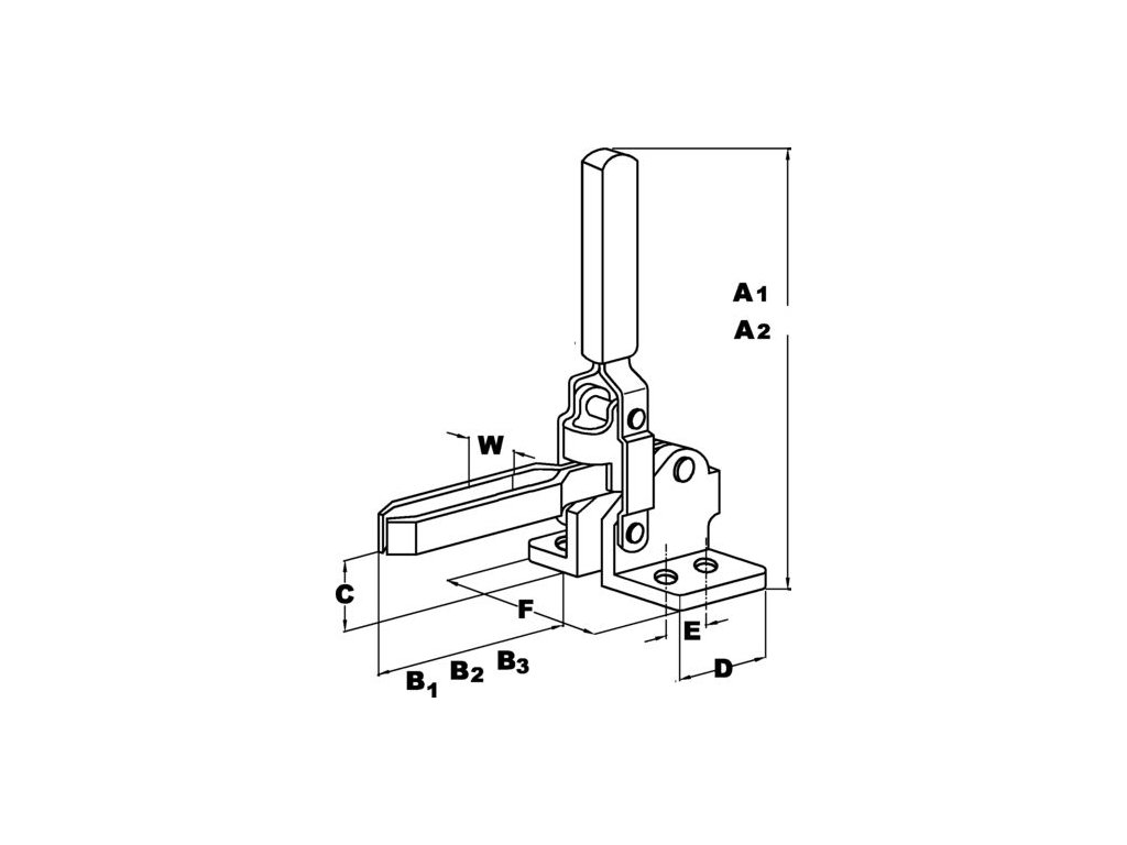 Vertikální upínky - pro všeobecné použití v automobilovém průmyslu a dalších průmyslových odvětvích, kde je požadován dlouhodobý bezproblémový provoz. Upínací síla působí směrem dolů pod úhlem 90° k příčníku.